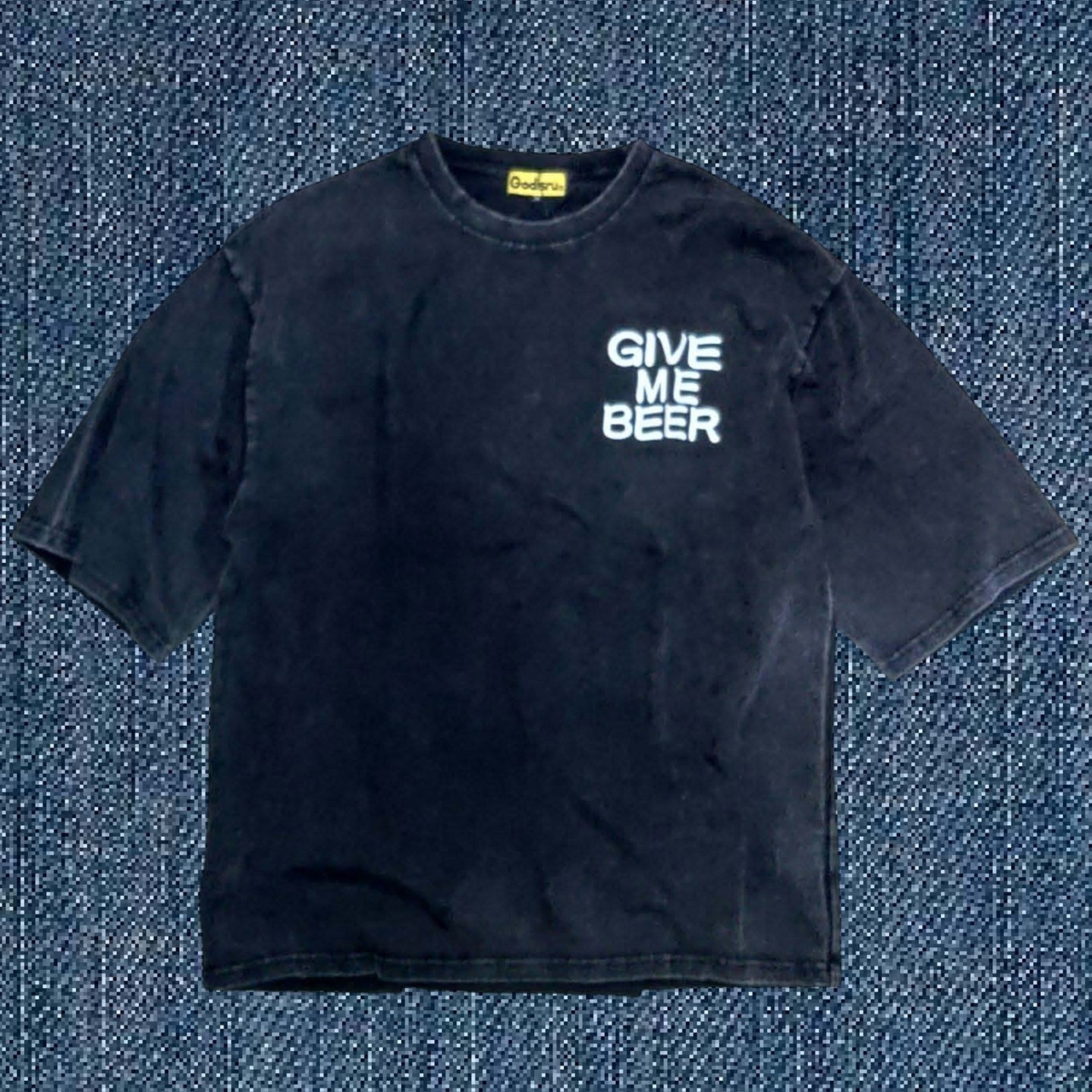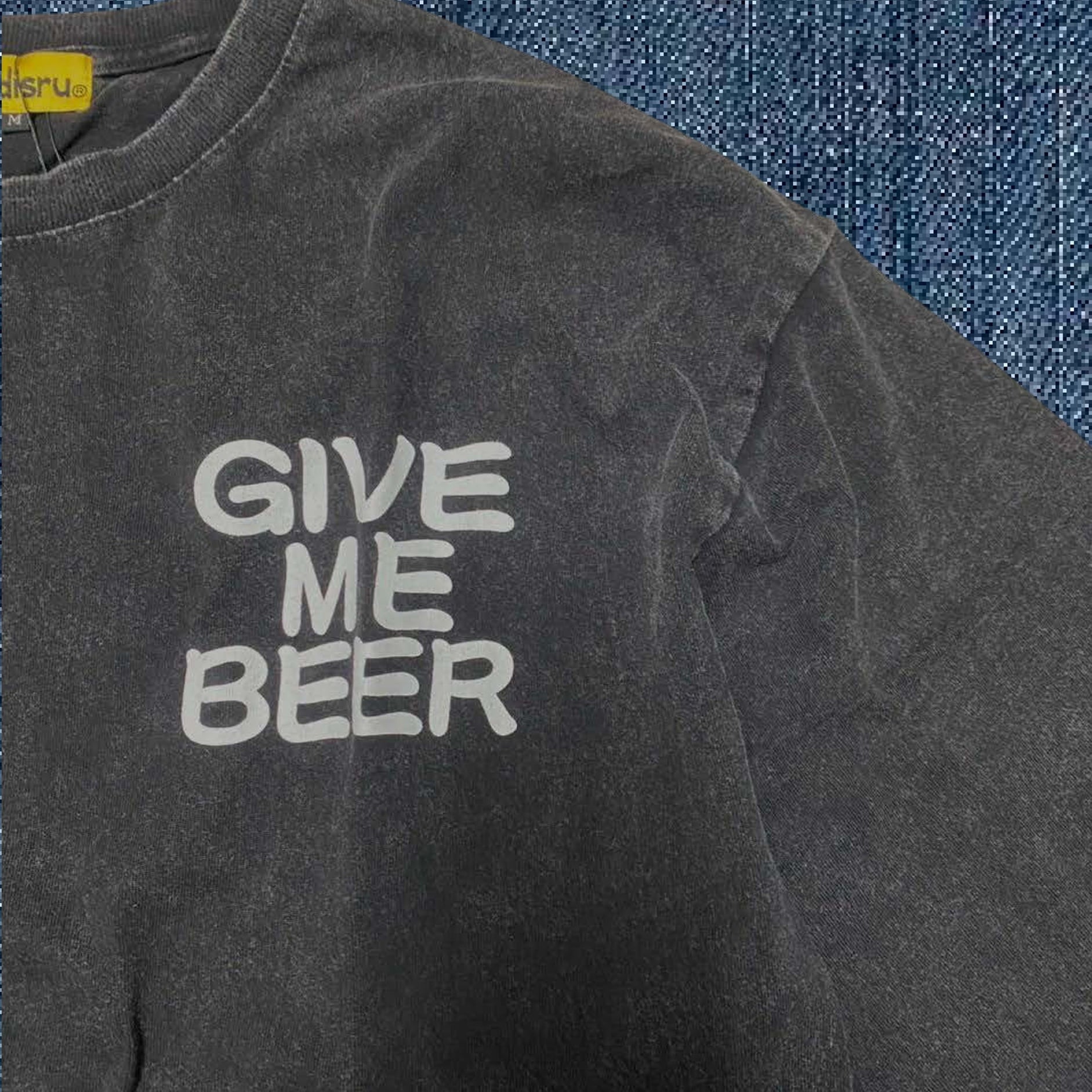 フロントには小さく『GIVE ME BEER』のメッセージがあり、さりげないオリジナリティを演出します。シンプルながらもパーティーやカジュアルなシーンにぴったりです!