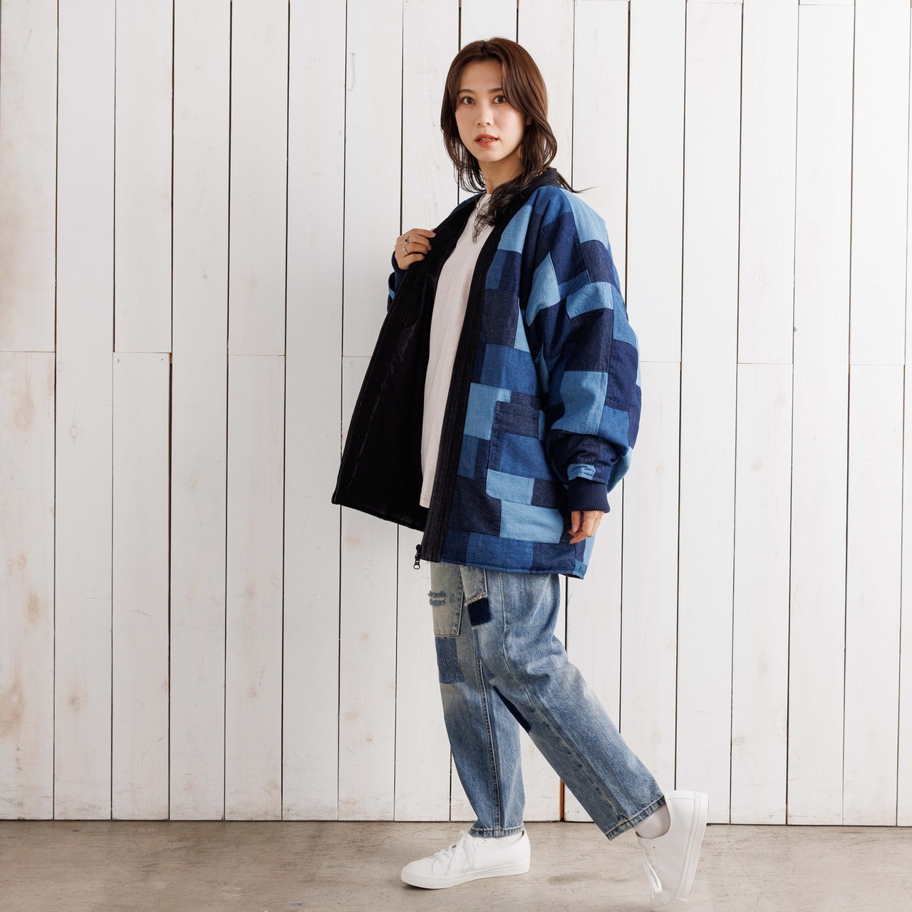 寒風寒波上等デニム半纏(ハンテン)パッチワークNAVY3