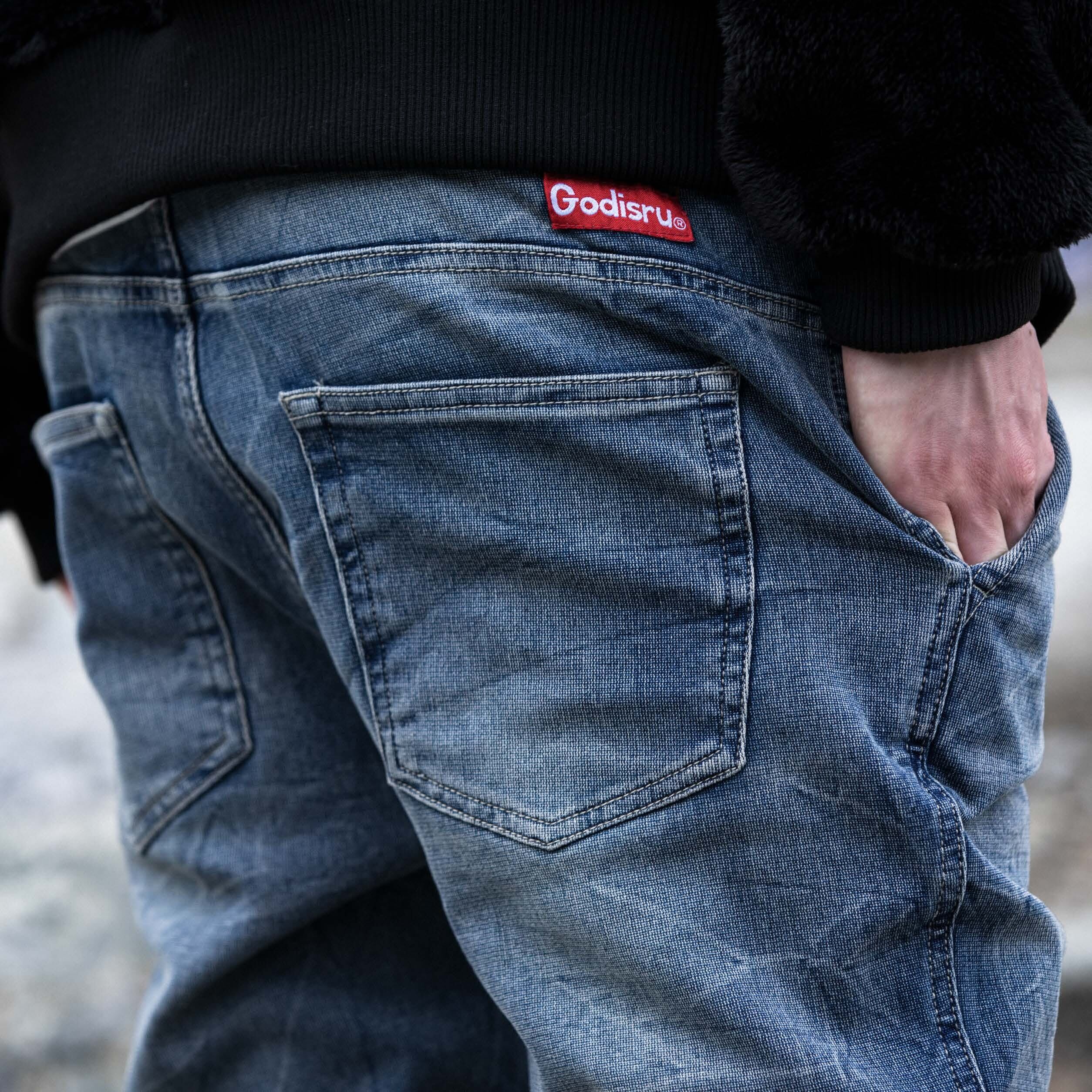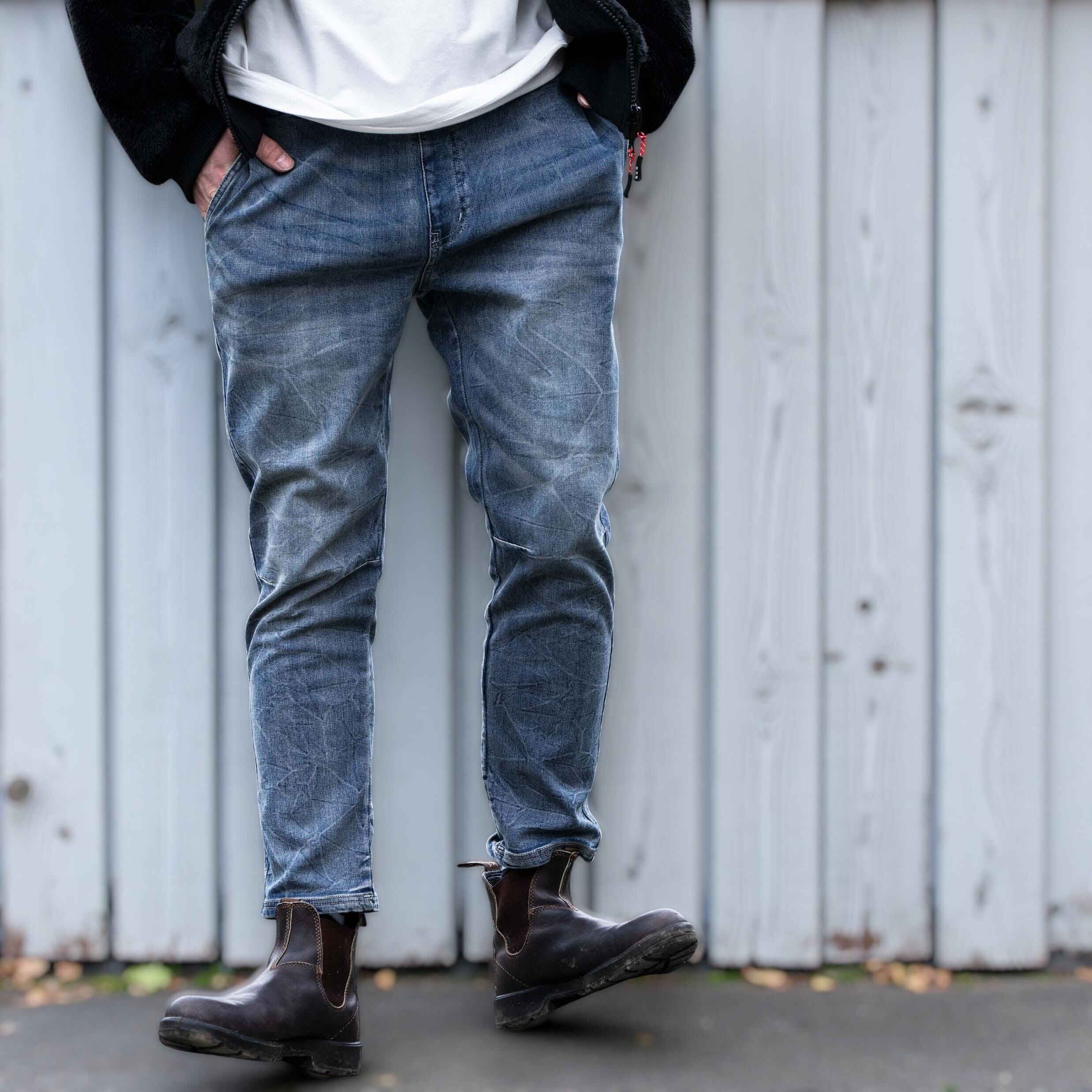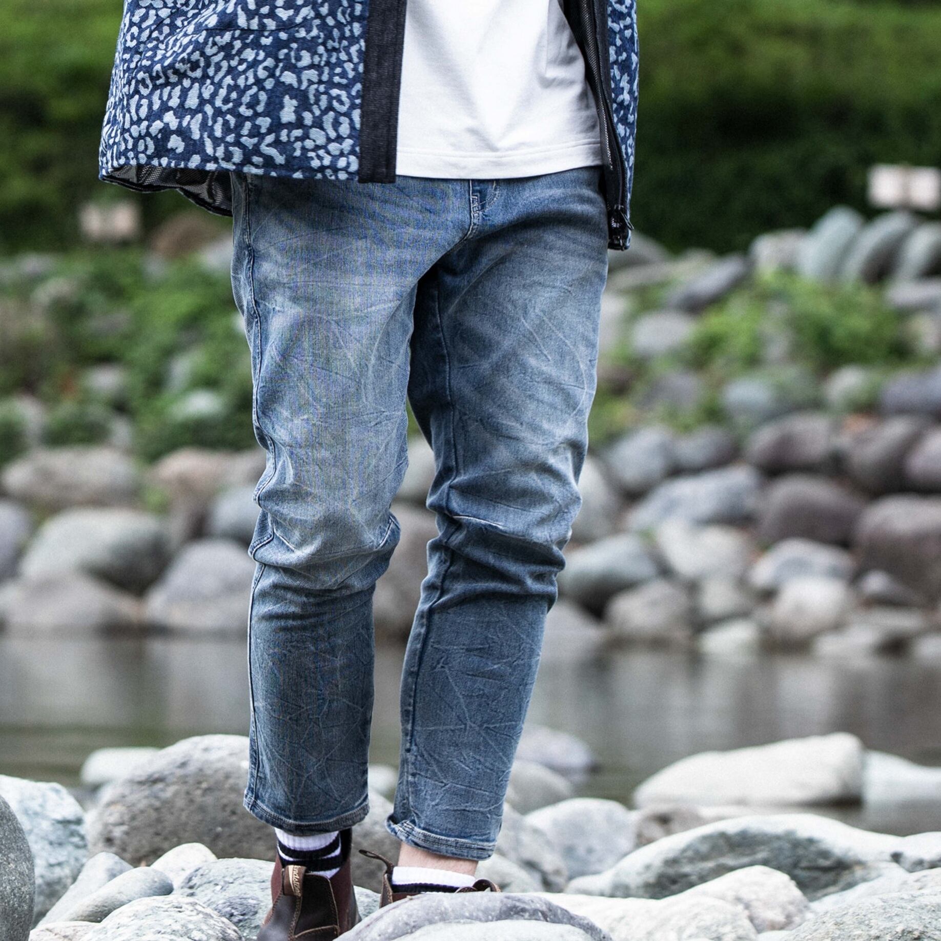 起毛 ストレッチ デニム 9分丈リブ パンツ