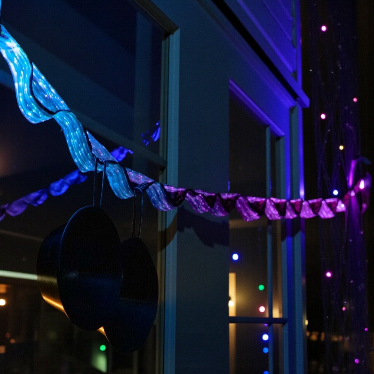 光る繊維を使用した生地で作成した、キャンプでもお馴染みのハンギングロープです!