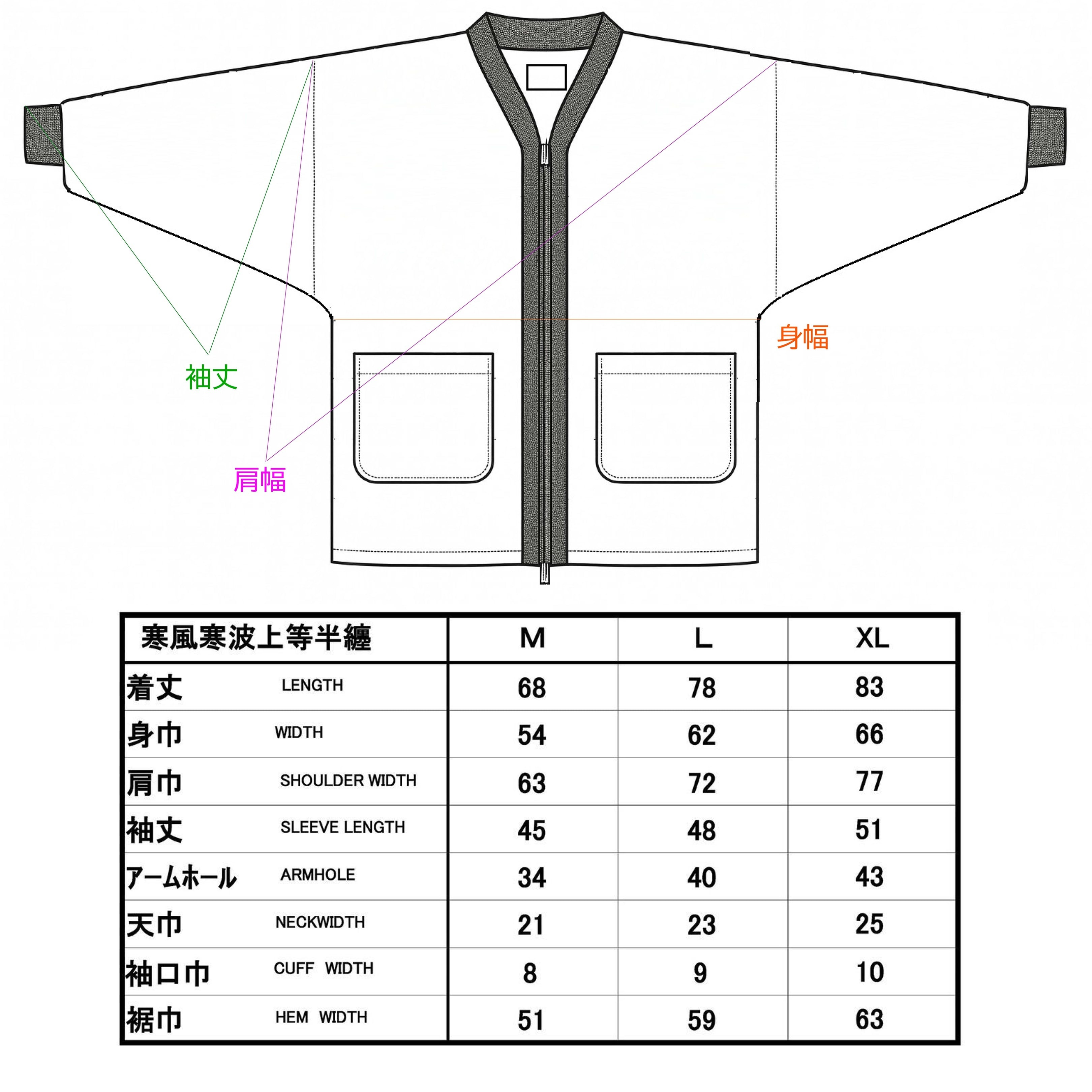 サイズ 適応身長 適応胸囲 実寸胸囲