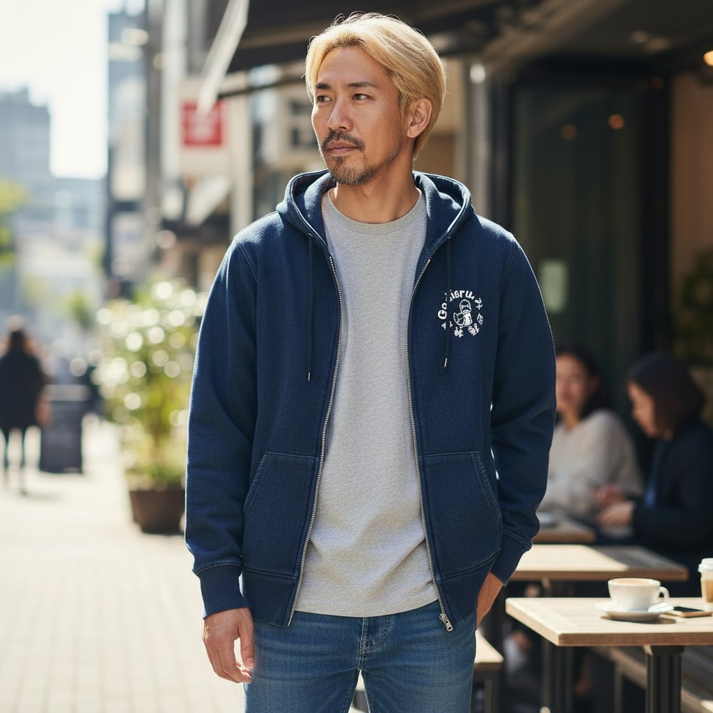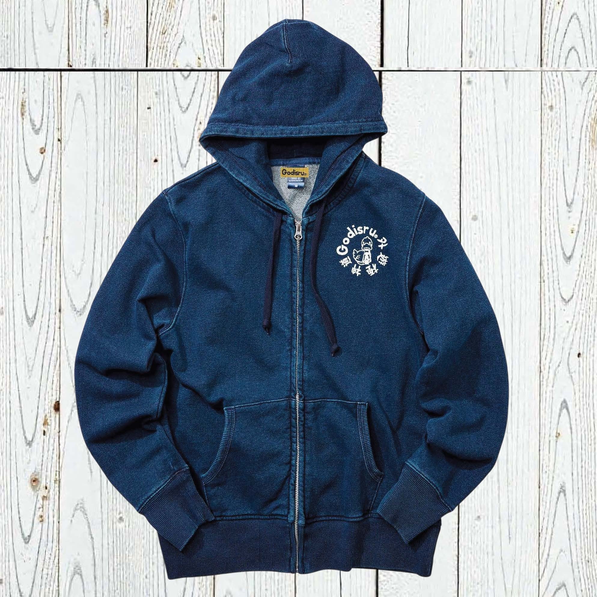インディゴ フルジップパーカー 外遊極神道プリント