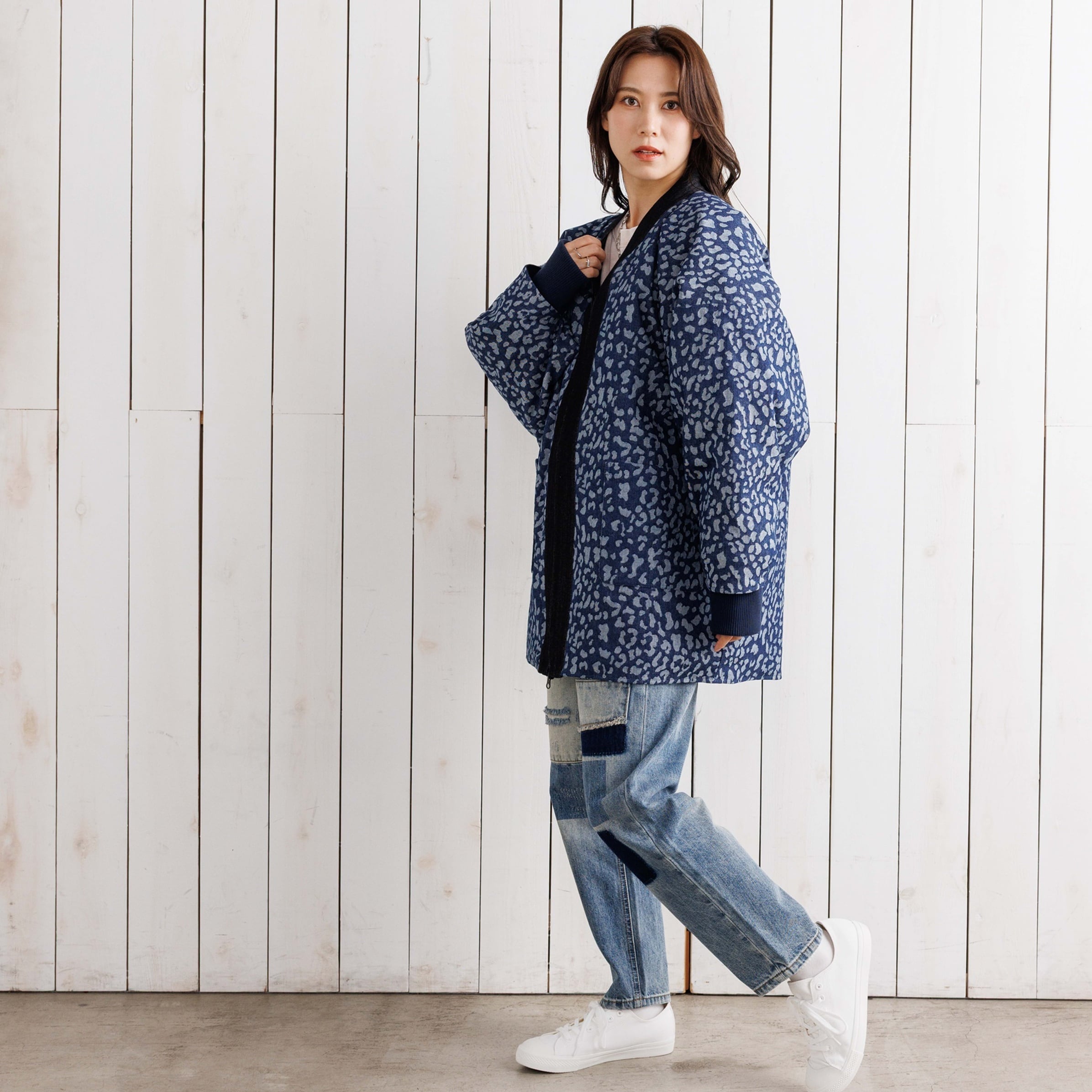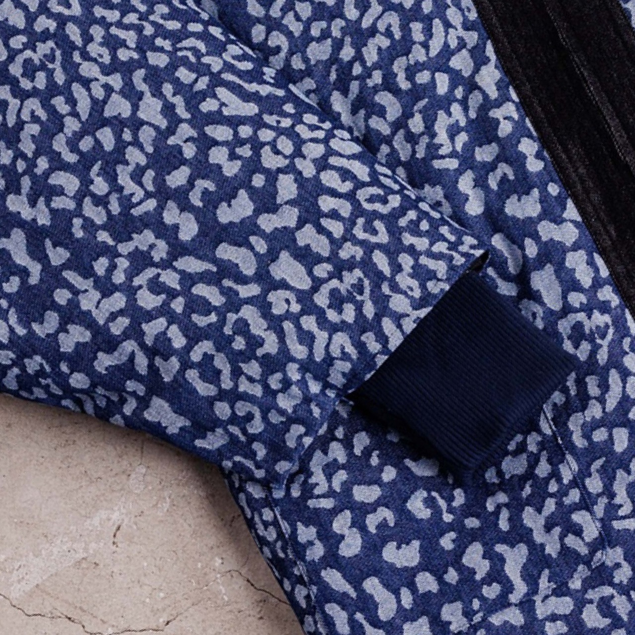 インディゴの濃淡で表現したヒョウ柄デニムジャガード。