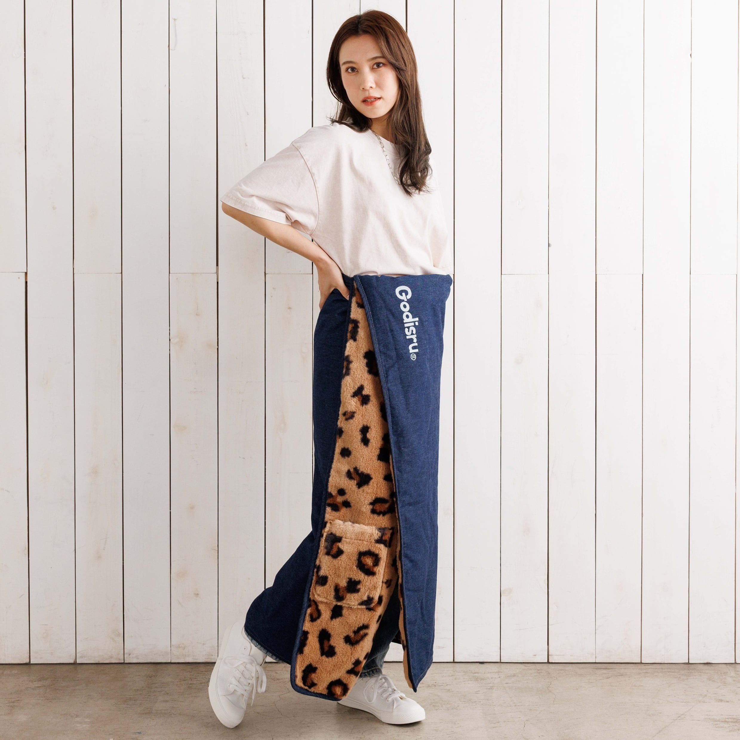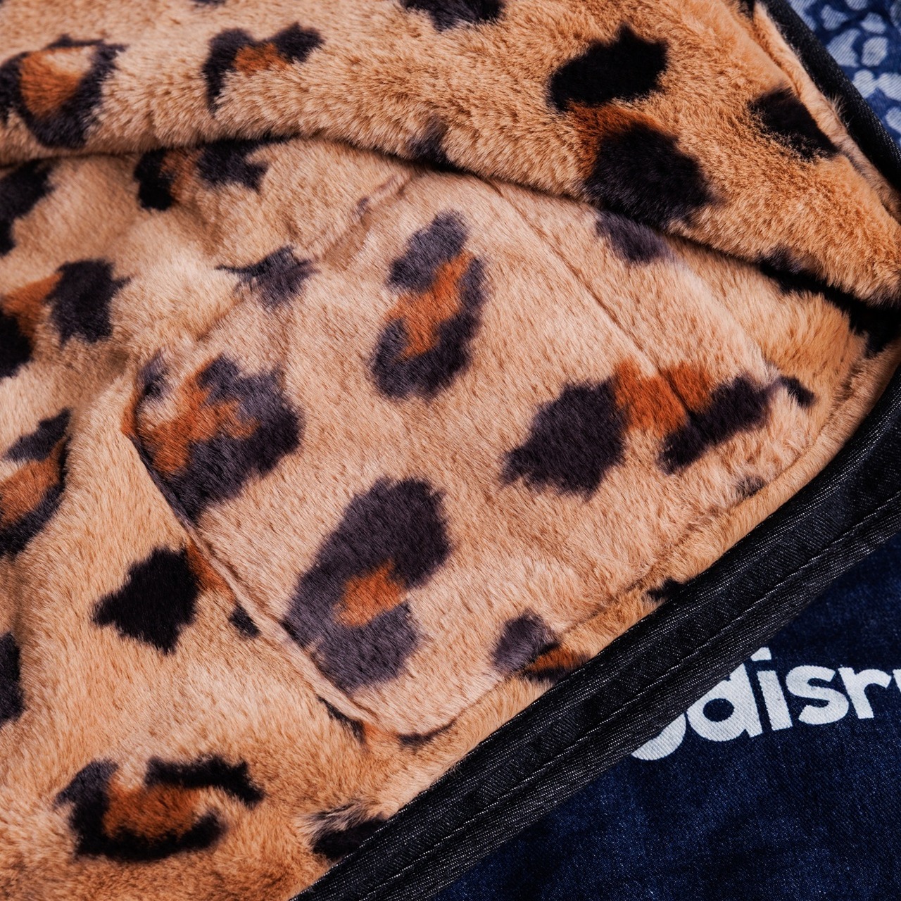 裏面はレオパード柄のマイクロファイバーフリースで、遊び心と暖かさを両立。