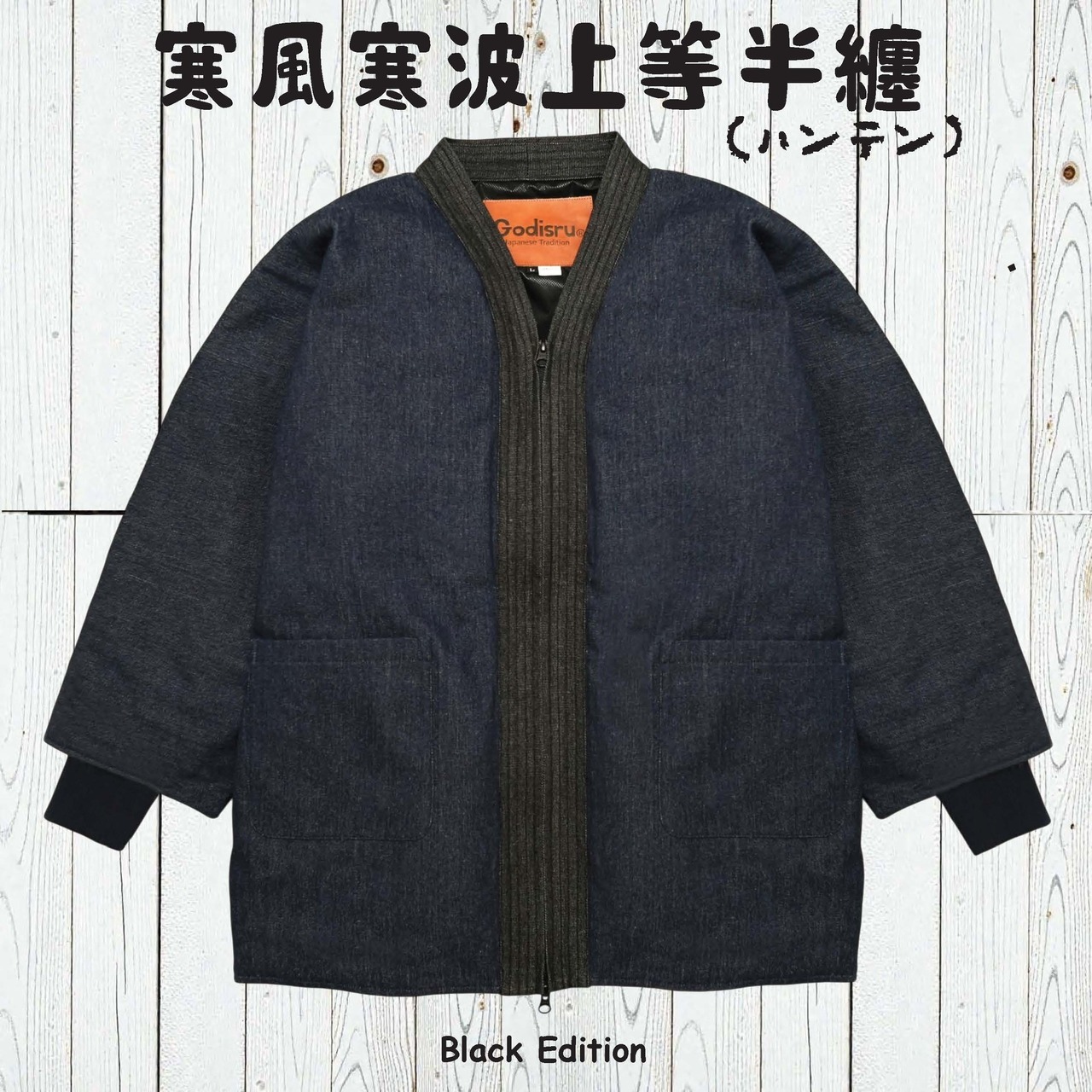 寒風寒波上等デニム半纏(ハンテン)NAVY×BLACK Editions