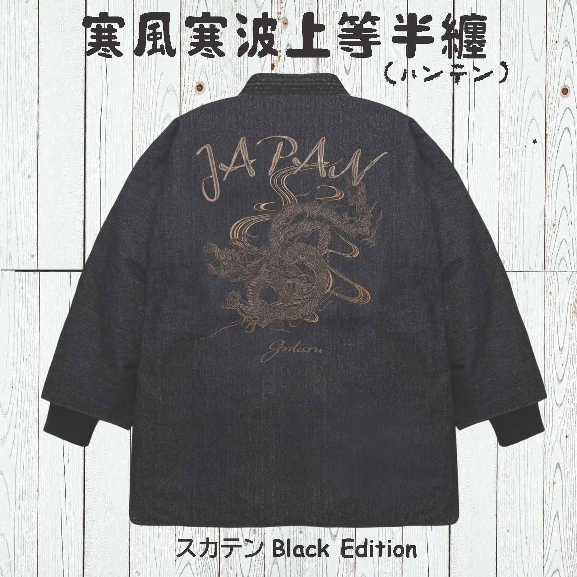 寒風寒波上等デニム半纏(ハンテン)BLACK龍刺繍×BLACK Editions